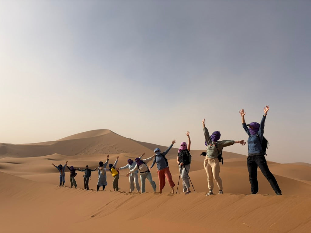 - Marche dans le désert: chaque jour, nous parcourrons 3 à 4 heures à pied, traversant les étendues désertiques variées. Ces marches seront des moments propices à la méditation en mouvement et à la contemplation silencieuse (au moins durant la première heure).
